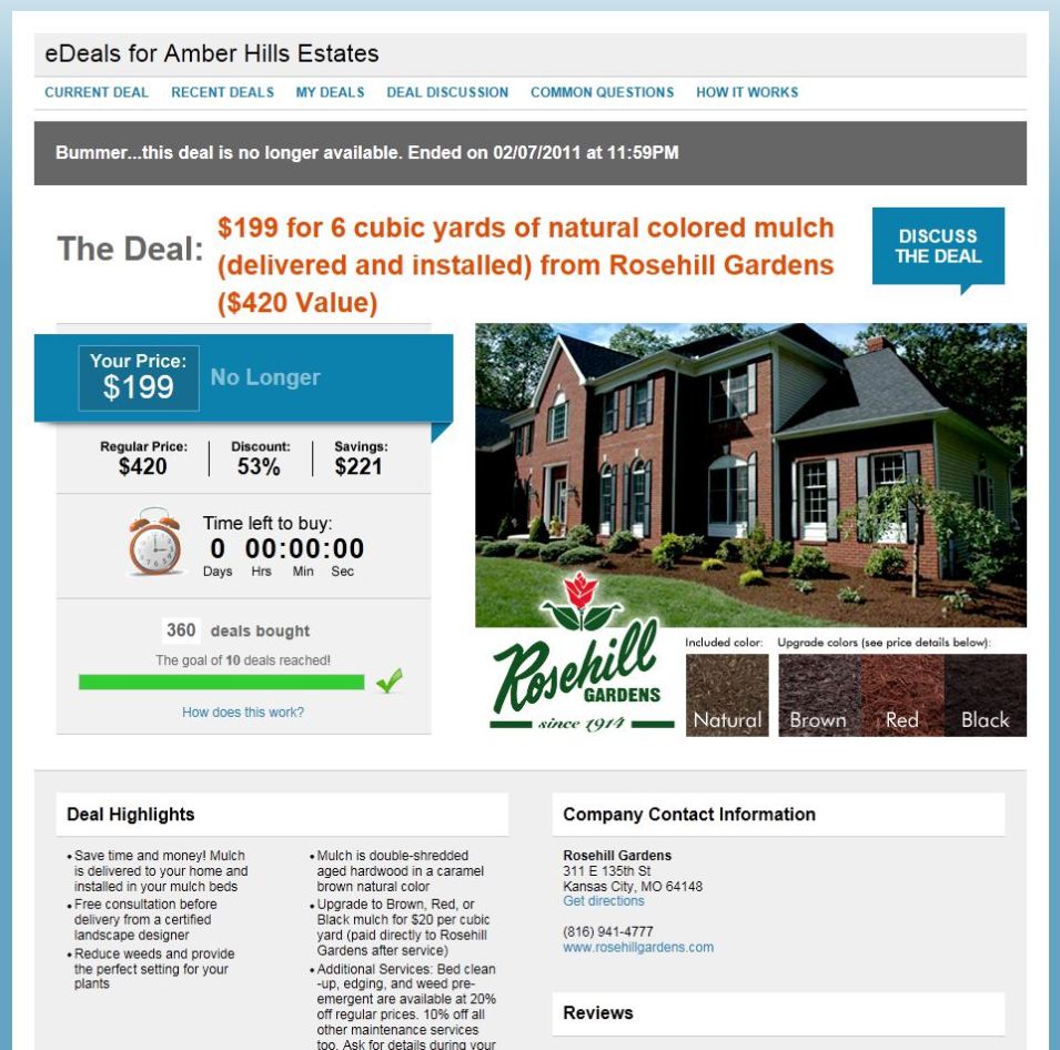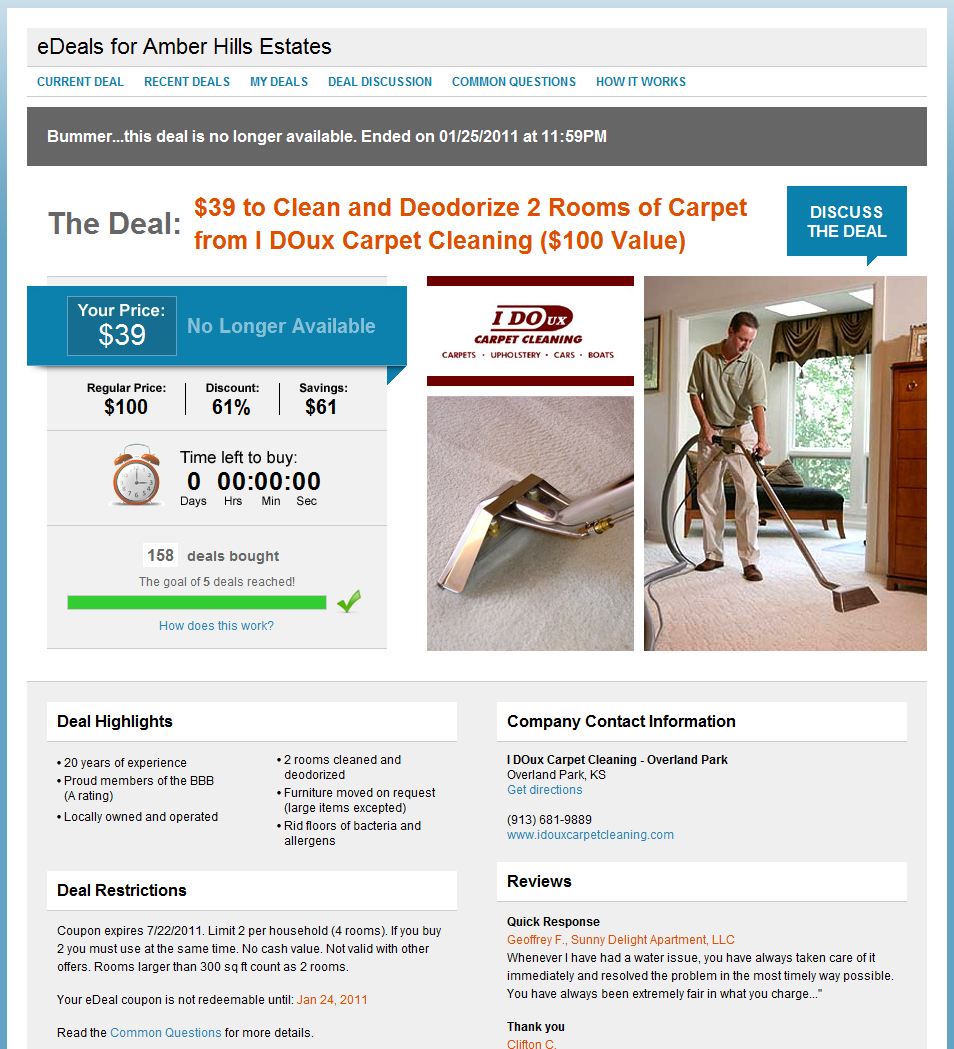 In our Kansas City area neighborhoods – the only city where our eDeals program is offered – you have purchased over 50,000 deals from local businesses that offer service to the home – like lawn care, window washing, and carpet cleaning. And because you and many of your neighbors bought deals, we were able to negotiate bulk discounts with local service providers – saving everyone money, while helping local providers acquire new customers.